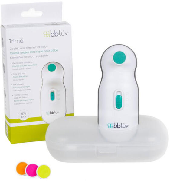 Bblüv Trimö elektromos körömreszelő - praktikus segítség lehet a picik körmének vágásában- csendes működésének köszönhetően akár a baba alvása közben is használható- két fokozatú működtetés- ergonomikus kialakítás- 4 különböző színű reszelő fej a baba életkorának megfelelően- kompakt tároló dobozban Működtetés: 1db AA (normál alkáli elem), mely nem tartozék. Fontos! A fenti termék egészségvédelmi és higiéniai terméknek minősül. Amennyiben a csomagolás felbontásra került, vagy a kipróbálás jelei látszódnak a terméken, úgy a 14 napos elállási jog érvényét veszíti a 45/2014. (II. 26. ) Korm. rendelet 29. § (1) bekezdése alapján.